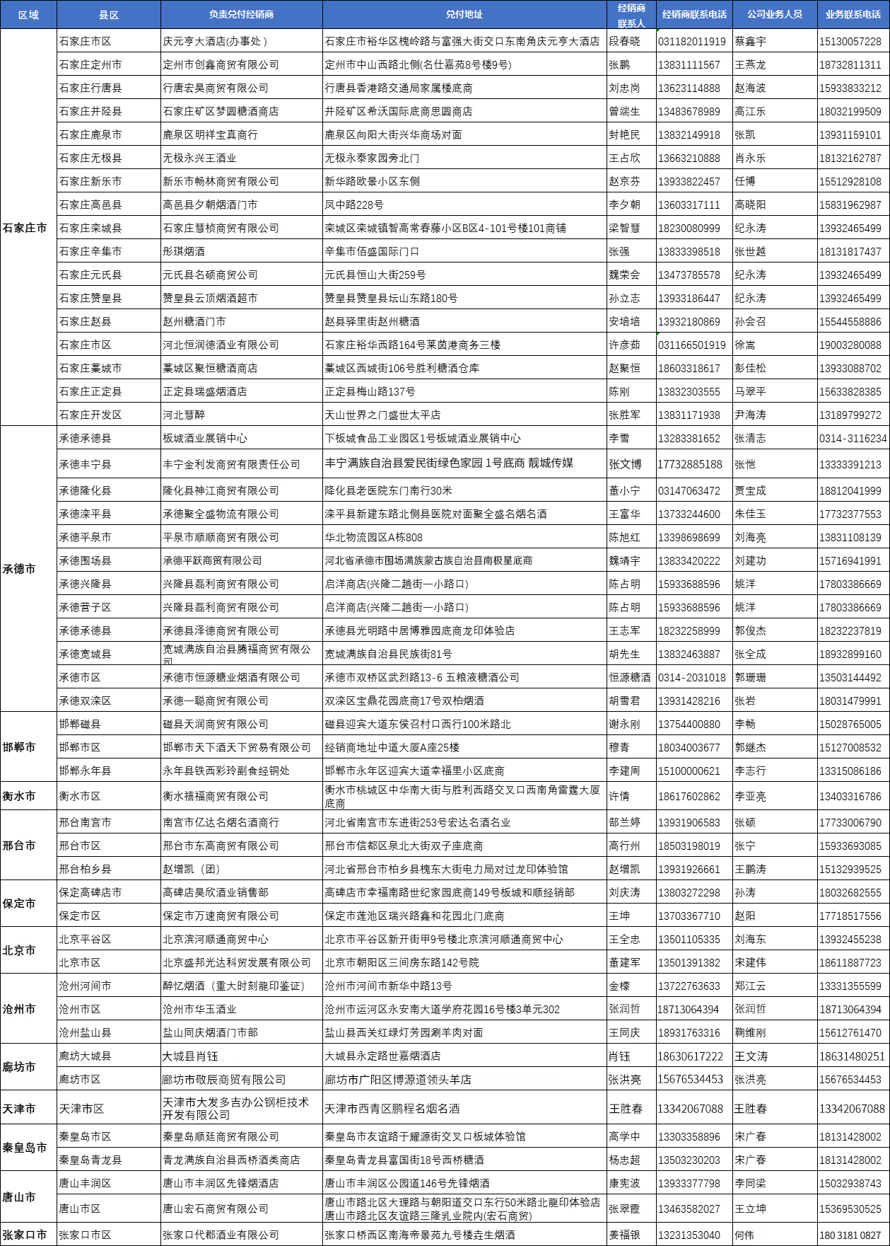板城酒業(yè)公司定制酒票兌付地點(diǎn)一覽表