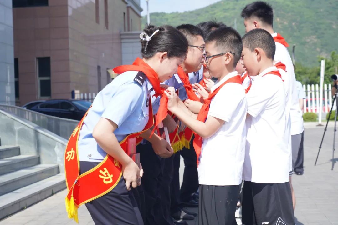 在開(kāi)營(yíng)儀式上,河北省公安廳黨委委員、政治部主任齊建政向承德市公安機(jī)關(guān)立功受獎(jiǎng)民警代表頒獎(jiǎng)。夏令營(yíng)的公安英烈子女代表為獲獎(jiǎng)民警敬戴紅領(lǐng)巾。這一刻,孩子們仰慕的眼神讓獲獎(jiǎng)民警心情難以平靜,他們把孩子們摟在懷里,真情祝福他們健康成長(zhǎng)。公安英烈子女代表黃昶瑋代表夏令營(yíng)的孩子們發(fā)言,他說(shuō),我們會(huì)牢記各位英模、公安前輩的囑托,繼承和發(fā)揚(yáng)父輩的忠誠(chéng)本色和優(yōu)良作風(fēng),樹(shù)立戰(zhàn)勝困難的信心和勇氣,沿著父輩的足跡堅(jiān)定前行,早日成為建設(shè)國(guó)家、服務(wù)人民的棟梁之才。