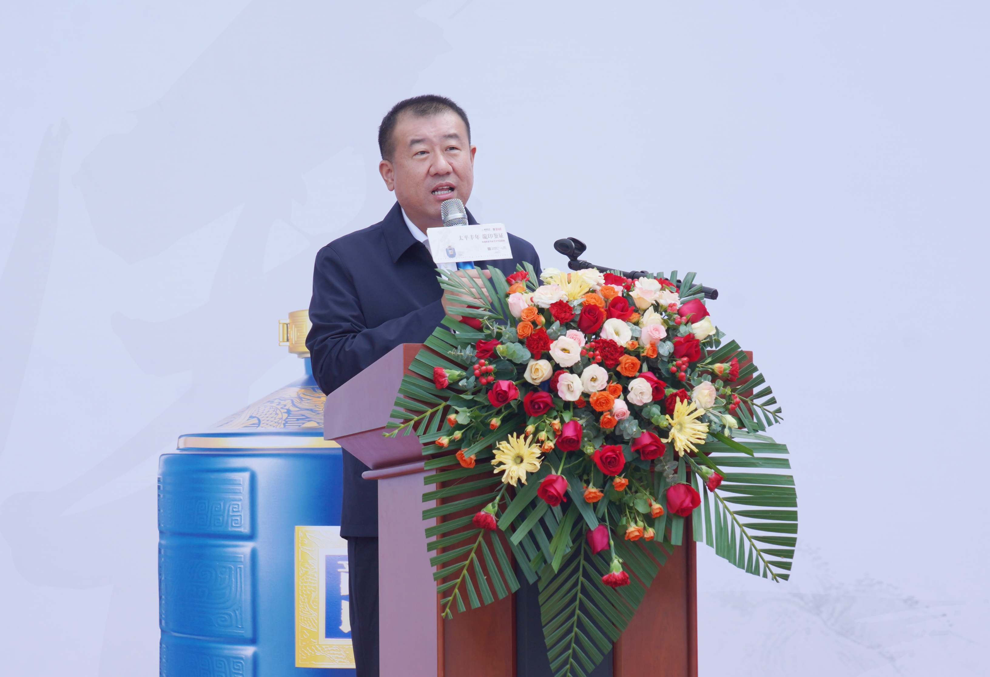 板城酒業(yè)黨委書(shū)記、總經(jīng)理張春生發(fā)表講話,書(shū)畫(huà)藝術(shù)歷史悠久,源遠(yuǎn)流長(zhǎng),是中華民族的文化瑰寶,在弘揚(yáng)民族精神,振興民族文化和滿足人民群眾日益增長(zhǎng)的精神文化需求方面發(fā)揮著重要作用。