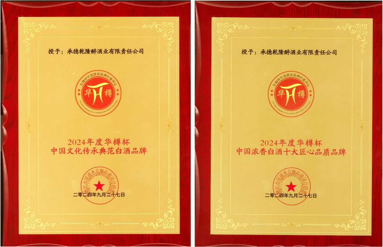 板城酒業(yè)憑借過硬的綜合實(shí)力得到行業(yè)肯定及評(píng)審專家的認(rèn)可,經(jīng)中國(guó)酒類流通協(xié)會(huì)“華樽杯”第十六屆中國(guó)酒類品牌價(jià)值評(píng)議組委會(huì)評(píng)測(cè),承德乾隆醉酒業(yè)有限責(zé)任公司(板城酒業(yè))2024年度的品牌價(jià)值為449.82億元,中國(guó)白酒行業(yè)排名三十位,同時(shí),榮獲“2024年度華樽杯中國(guó)濃香白酒十大匠心品質(zhì)品牌”、“2024年度華樽杯中國(guó)文化傳承典范白酒品牌”獎(jiǎng)項(xiàng),充分彰顯了冀酒的品質(zhì)自信,也傳遞出行業(yè)、社會(huì)對(duì)板城酒業(yè)品牌文化的高度認(rèn)可。
