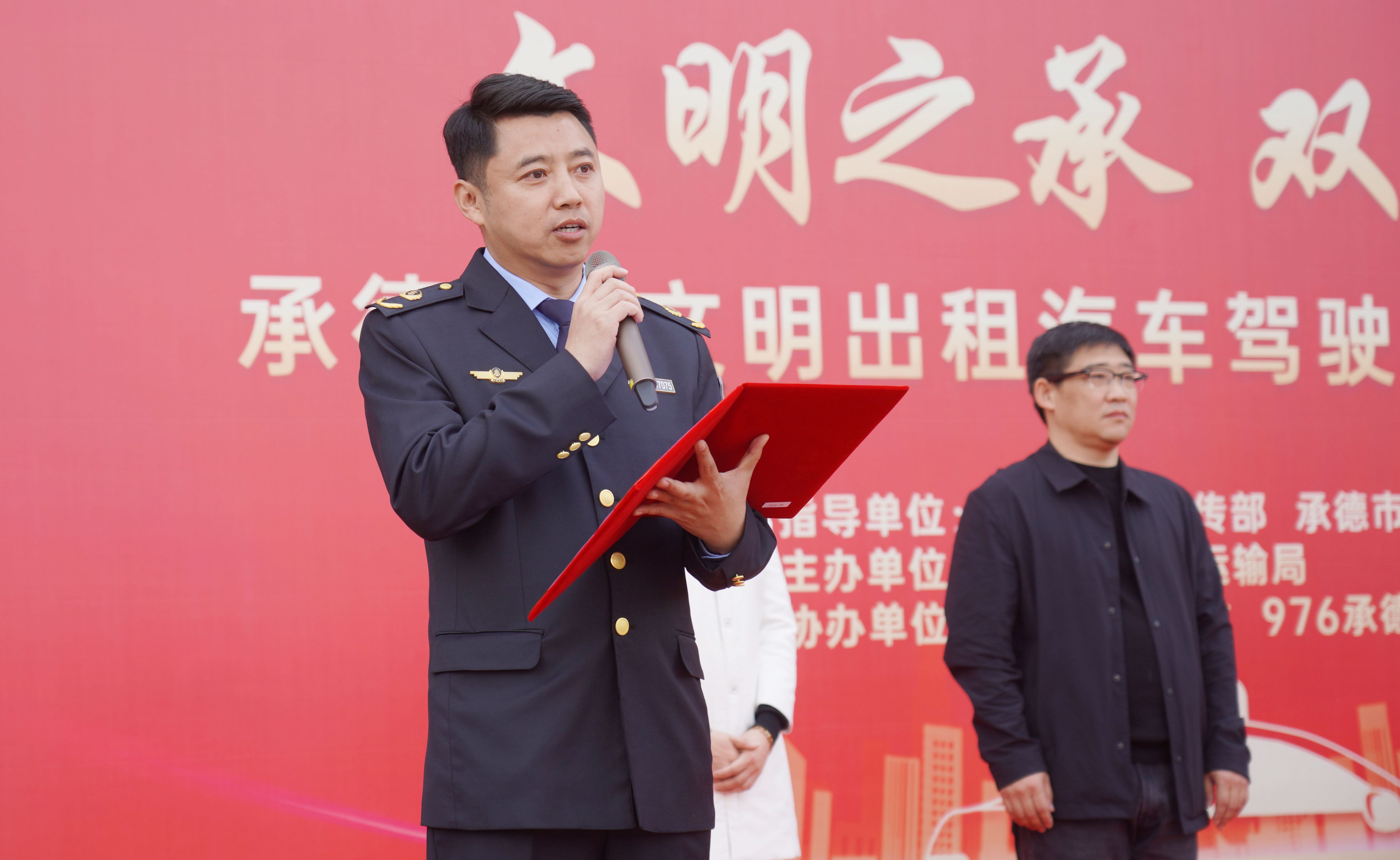 承德市文明辦副主任吳清玲,承德市交通運(yùn)輸局黨組成員、副局長(zhǎng)吳洪波,承德市交通運(yùn)輸綜合行政執(zhí)法支隊(duì)黨總支書(shū)記、支隊(duì)長(zhǎng)劉立杰,承德市交通運(yùn)輸綜合行政執(zhí)法支隊(duì)副支隊(duì)長(zhǎng)劉東旭,976承德交通文藝廣播總監(jiān)胡慧梅,河北板城酒業(yè)品牌部經(jīng)理張文隆與出租車從業(yè)人員共同出席本次活動(dòng)。