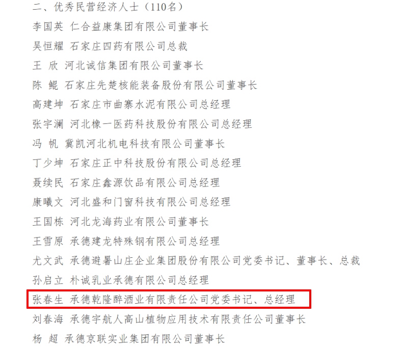 板城酒業(yè)黨委書記、總經(jīng)理張春生榮獲“2024年度河北省優(yōu)秀民營(yíng)經(jīng)濟(jì)人士”稱號(hào)!